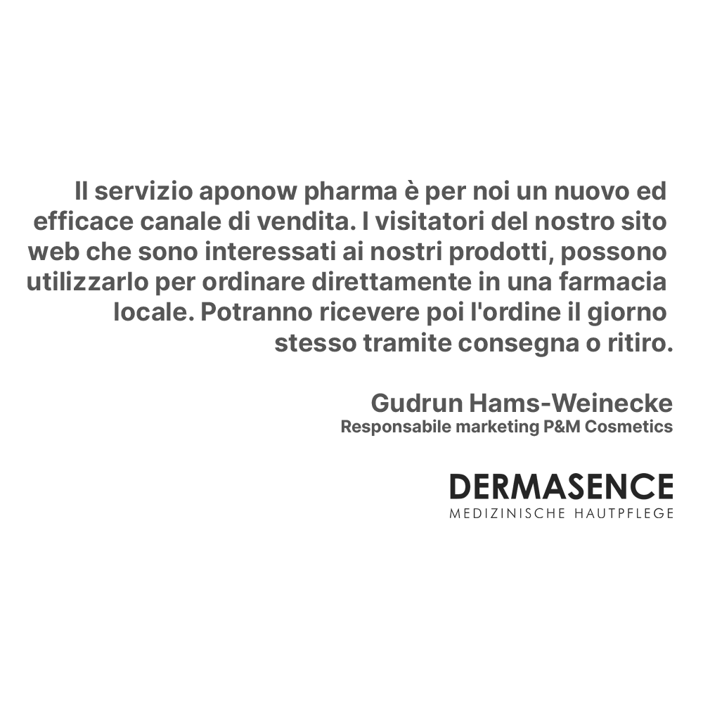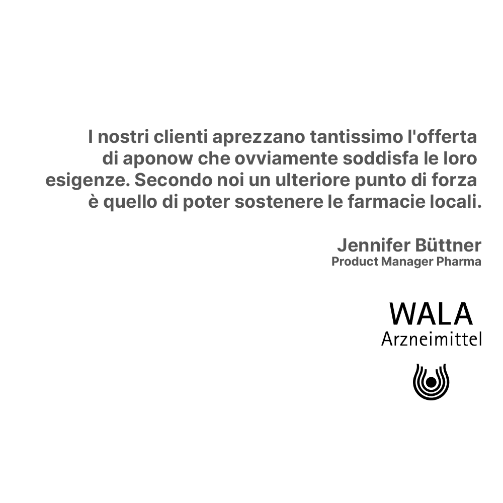 aponow è una funzione che permette ai visitatori del vostro sito web di ordinare i prodotti direttamente in una farmacia locale. Riescono a farlo anche altri? Sì. Ma noi siamo sempre un passo avanti.